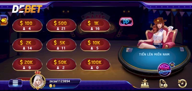Đa dạng về hạn mức tiền cược tại Game bài Debet