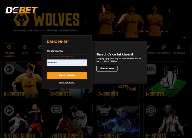 Để trở thành đại lý, trước tiên cần phải có tài khoản trên hệ thống của Debet. Nếu chưa có, cược thủ chỉ cần truy cập vào trang chủ và đăng ký mới. Sau khi đăng nhập thành công, hãy tìm đến và nhấp vào mục “Đại lý” trên giao diện chính, và các bước tiếp theo sẽ được hướng dẫn tường tận ngay bên dưới.