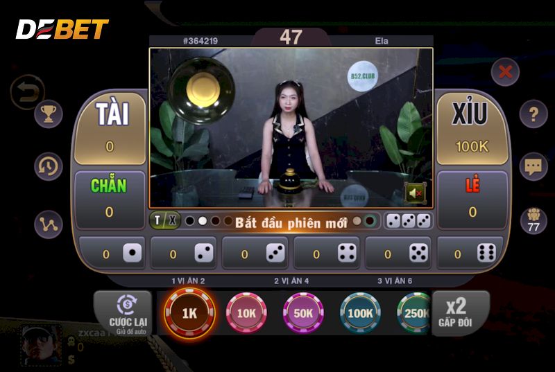 Tài xỉu là một trò truyền thống với ba viên xúc xắc, đã được Debet đưa lên một tầm cao mới trong không gian Live Casino. Hội viên chỉ cần dự đoán đặt cược vào hai lựa chọn chính: Tài (từ 11 đến 17 điểm) hoặc Xỉu (từ 4 đến 10 điểm). Sự hấp dẫn còn đến từ nhiều lựa chọn cược phụ như Chẵn/Lẻ, bộ đôi/ba,…