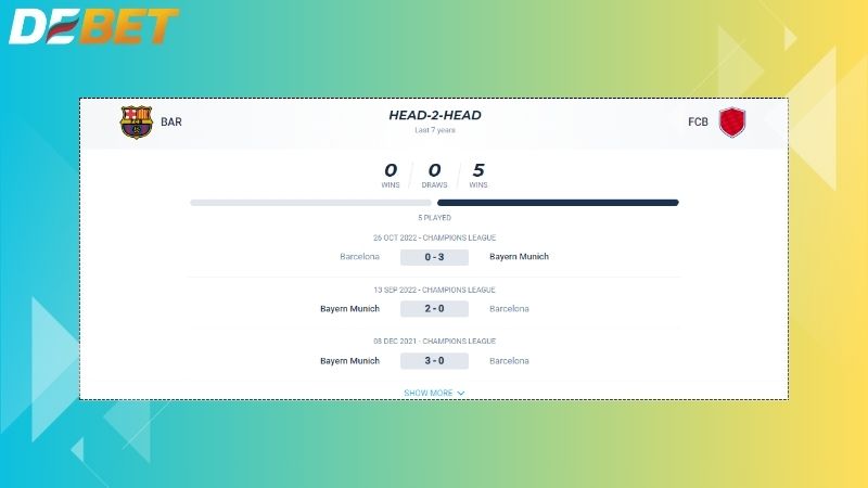 Thành tích đối đầu giữa Barcelona vs Bayern Munich